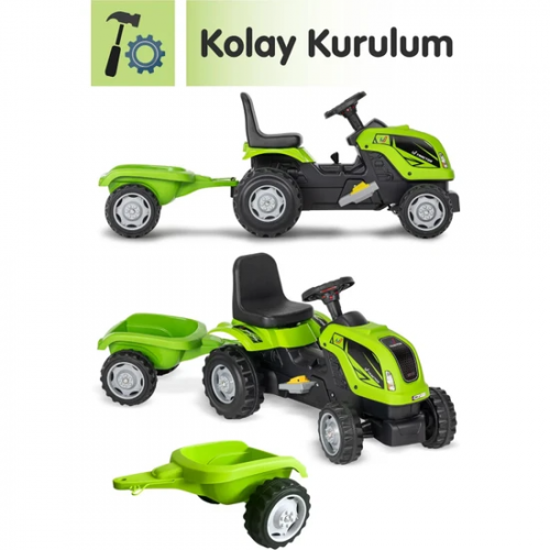 UJ Toys 6 V Akülü Traktör Römorklu - Yeşil