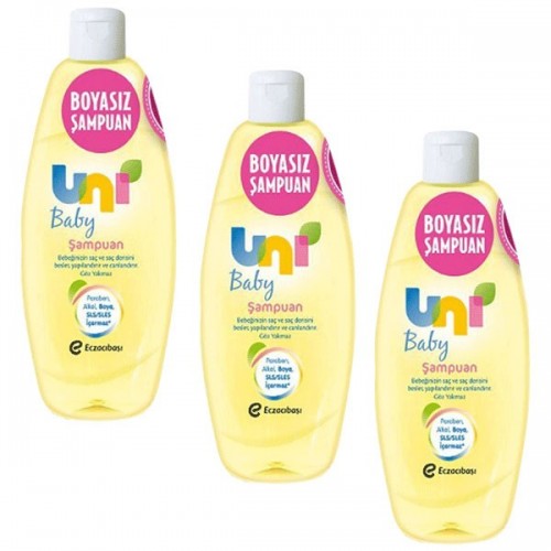Uni Baby Boyasız Saç ve Vücut Şampuanı Pompasız 750 ml x 3 Adet
