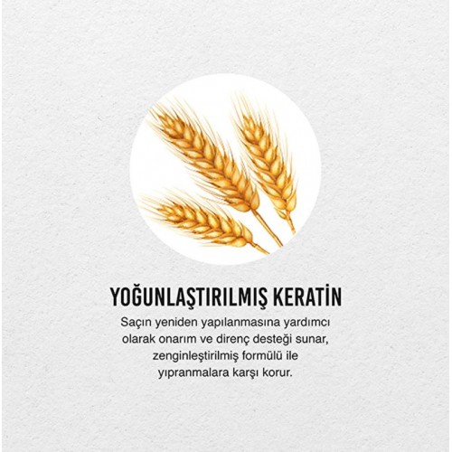 • İçerdiği Bitkisel Keratin sayesinde saçın yeniden yapılanmasına yardımcı olur ve yıpranmalara karşı koruma, onarım ve direnç desteği verir.